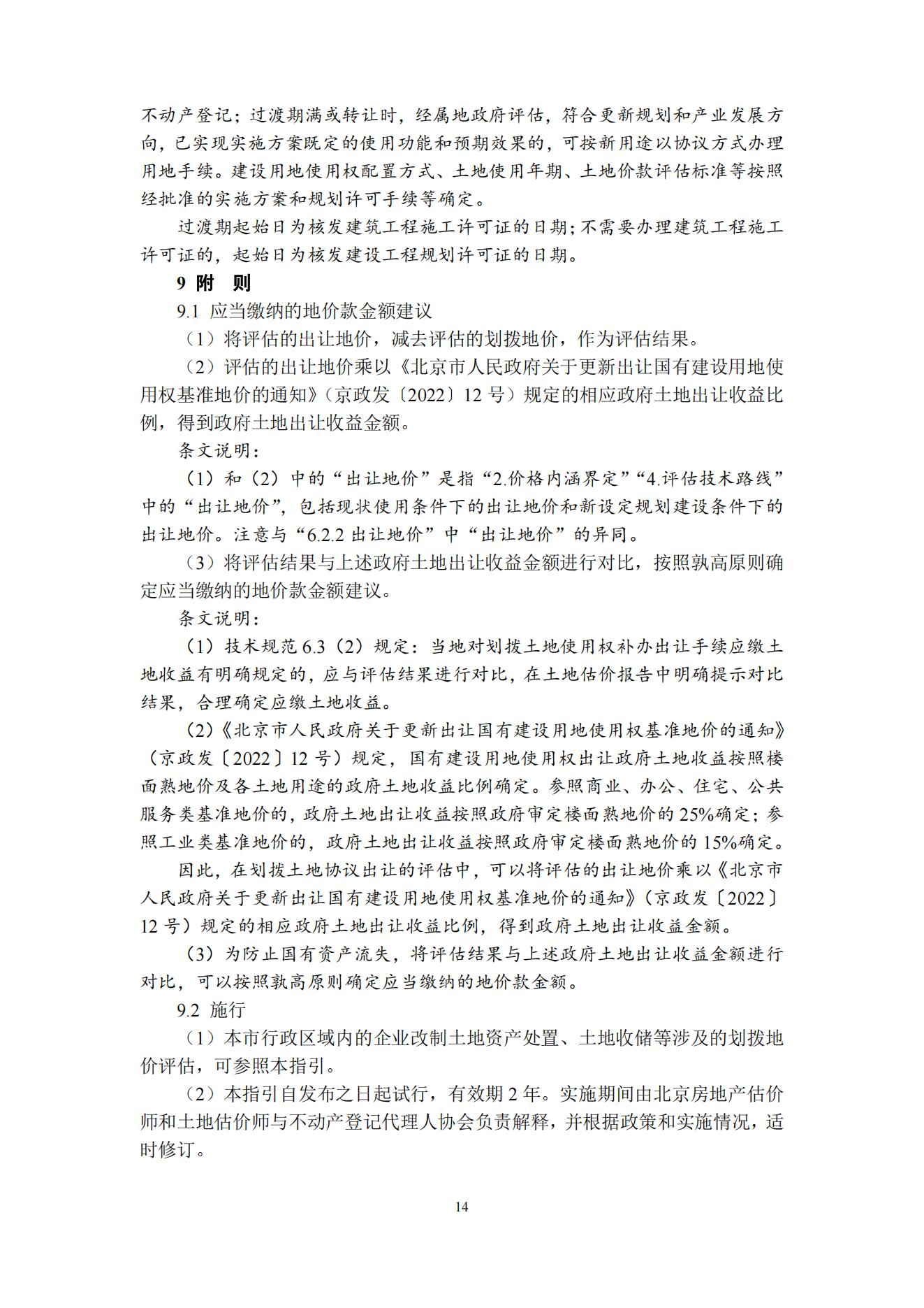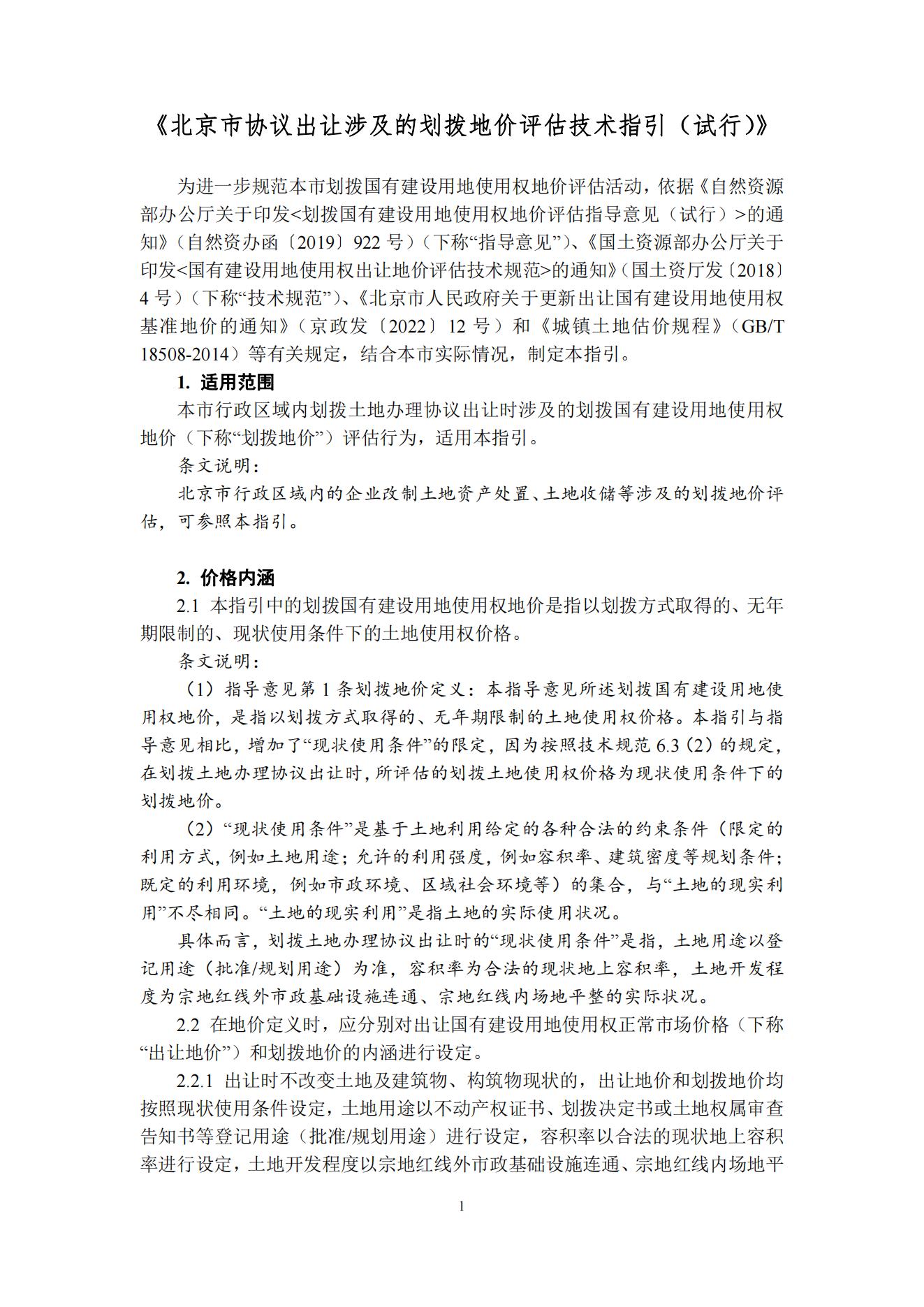 《北京市協議出讓涉及的劃撥地價評估技術指引(試行)》